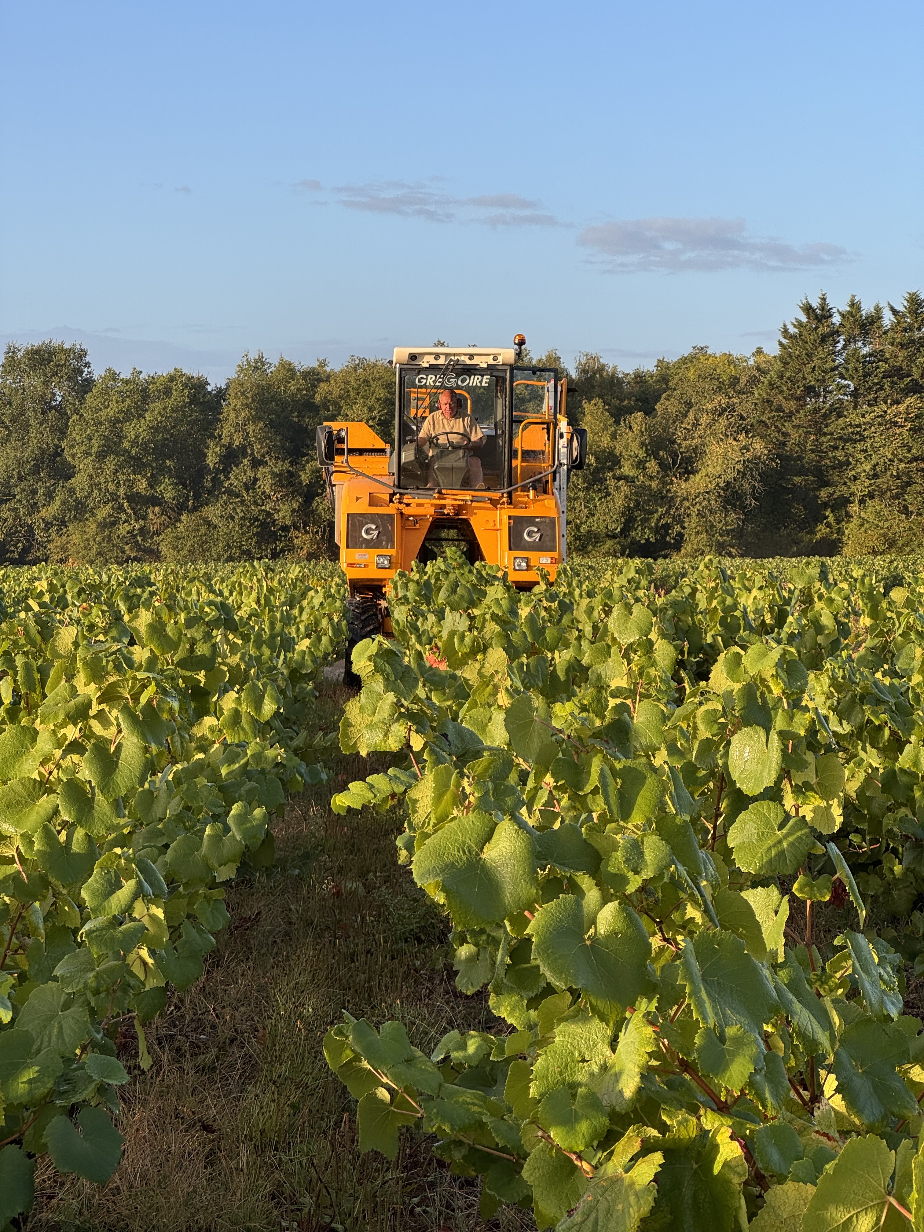 Au Domaine de la Chevrue, nous utilisons une machine à vendanger, qui permet de récolter les grappes efficacement tout en respectant la vigne et la qualité des raisins.